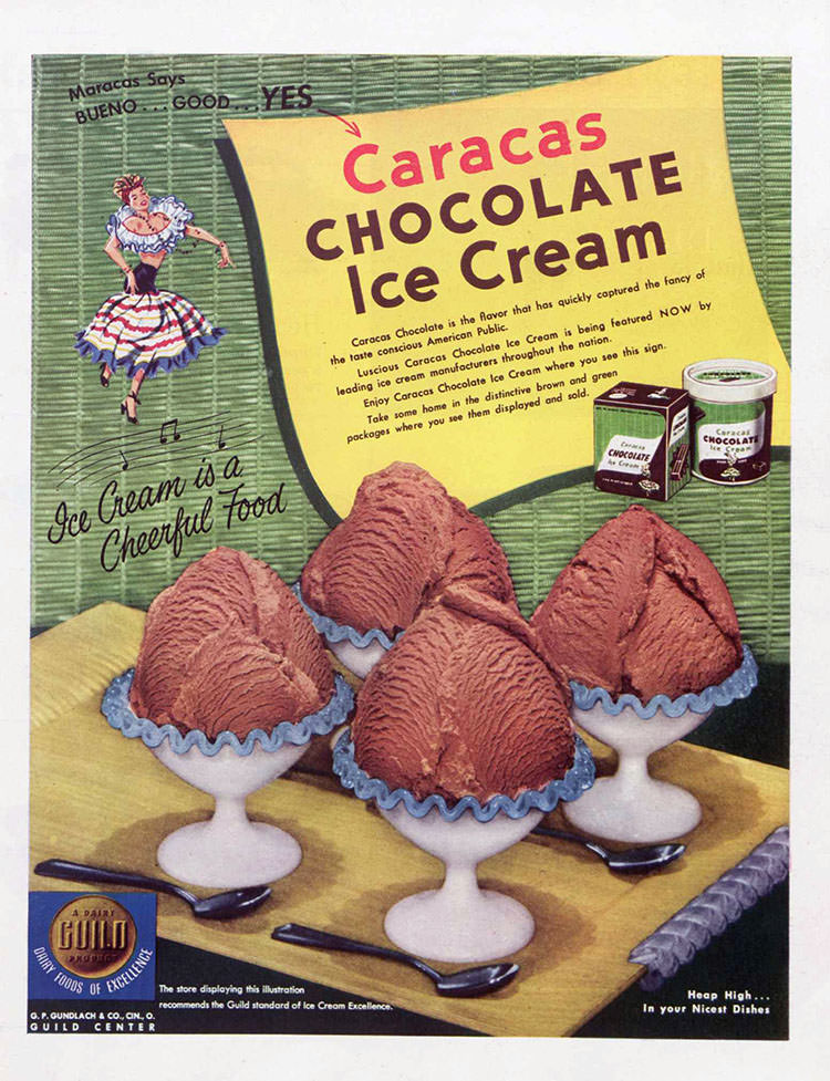It seems they made a big push for Caracas Chocolate. Not many other ads show up, so I 'm not sure about the claim that it has "captured the fancy of the taste-conscious American Public." But this would appeal to the people who wanted something new and international and hence better. |