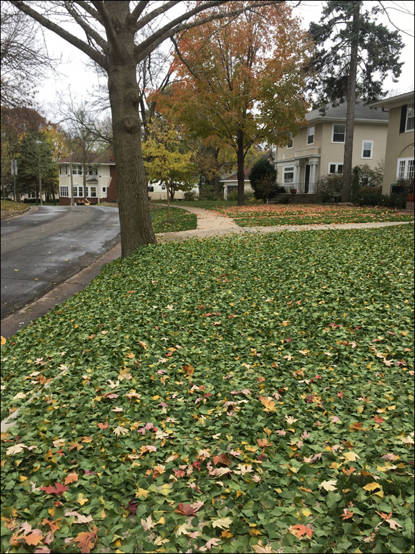 Walking Birch around the neighborhood this morning I noticed that several of the trees had dumped all of their leaves at the same time. I think this is a ginko thing. I don't know; I just like saying "It's a ginko thing."