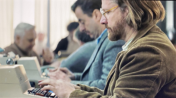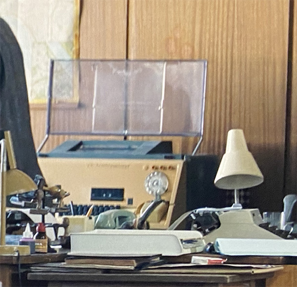 The chief editor, not shown, has a Smith Corona. The newspaper office, I just realized, is the only location that seems to have any sun.