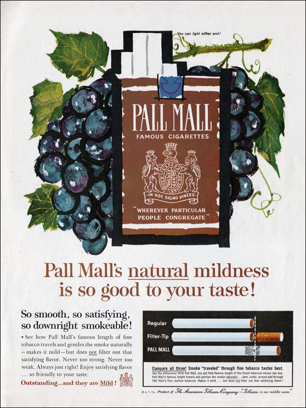 The association of cigarettes with fruits was a clever touch, but Pall Mall was doomed, as filtered cigarette would so dominate the market that they were regarded as the default. Unfiltered cigarettes would be called as such.