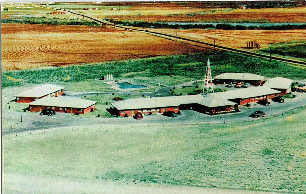 Back of the card: "I've been in New Mexica at Hobbs for several days - these motels all have swimming pools ad are sure hotsy-totsy." |