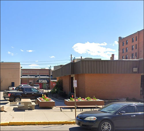 "Near the First National Bank, the Post Office, and the Catholic Church." Seems to be targeting tourists with a particular set of objectives.