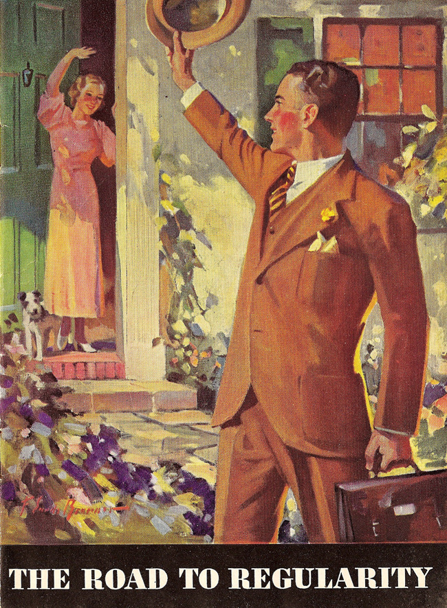 Constancy, that's the secret to happiness. Not veering from job to job, town to town, parner to partner. Find a path and stick to it, friend, and you'll find yourself with a nice house and a lovely (and dainty) wife and a steady career that involves carrying things back and forth in a leather satchel.