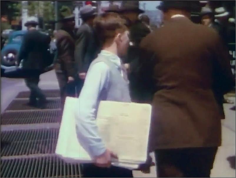 Nothing special about this shot, except: color. Cars and suits and a newsboy in a grey vest.