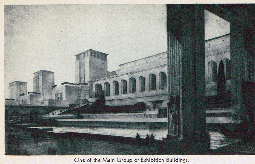 I have no idea. I can't find anything that looks like this on my maps. Seems like another early rendering, which makes me wonder how far in advance this booklet was prepared, and why.