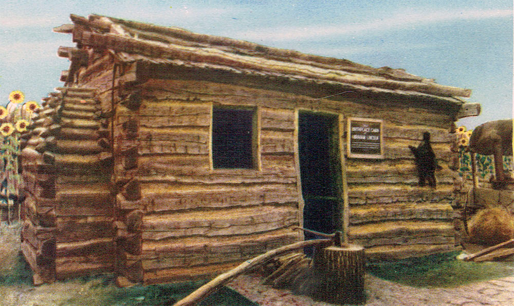 In the midst of all that futuristic bounty, this: a replica of Lincoln's homely hut.