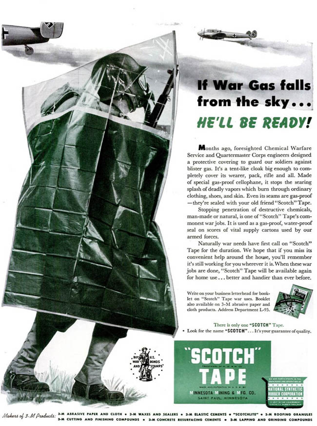 There's something less than reassuring about a folded bag that doesn't go all the way down to your shoes, but this is supposed to guard against blistering agents. The mask takes care of the stuff you're not supposed to inhale.