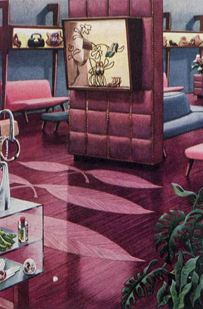 Welcome to the endless variety of Armstrong floor covering. You’re about to learn something many have forgotten: American floors used to be wild. Craaaaazy. Modern and moderne.