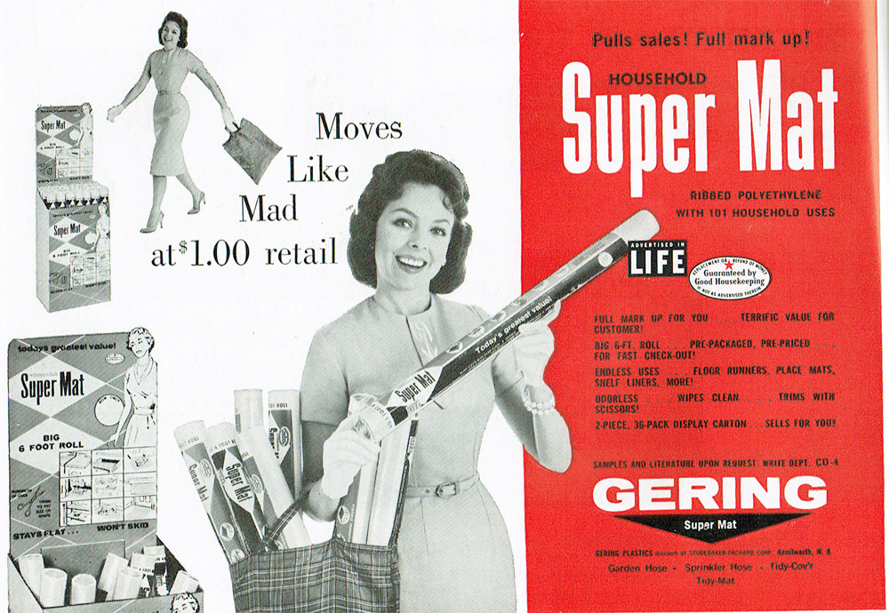 Gering Plastics, if you were wondering, was a division of Studebaker-Packard. Makers of Tidy-Cov'r and the Tidy-Mat! They were sold to Monsanto after a while.