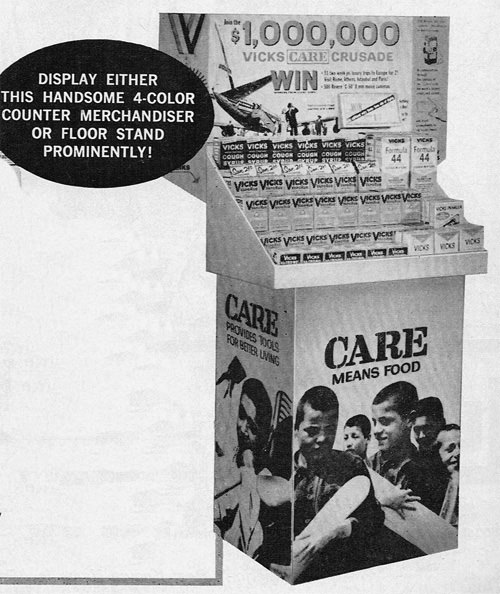 Another example of a floor display. You wonder how many times the druggist had to put everything back in order, cursing, because someone knocked it over.