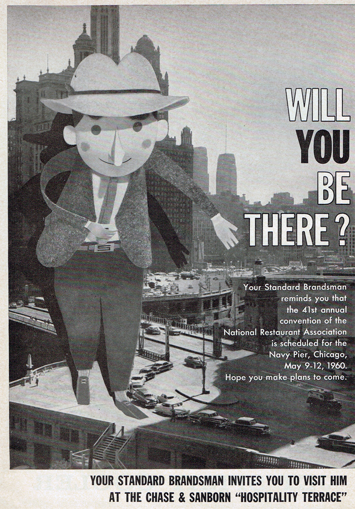 Meet . . . the Standard Brandsman. Stooped over from years of carrying sample cases, five o'clock shadow.