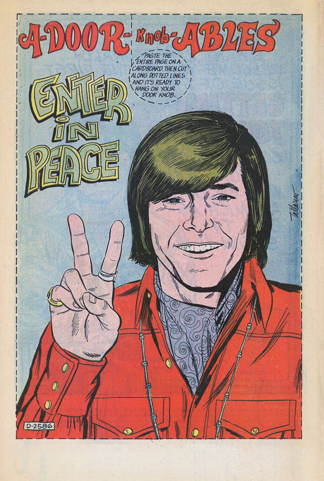 All you need to know about the early 70s can be gleaned from this picture. Flaccid bromides about “peace.” A wedge of hair that covers the forehead - which is great if you have pimples, but you have to ask yourself whether you have the pimples because your hair is over your head. Excess rings. Ascots. Necklaces. Jackets with pockets that have snaps that match the snaps on the cuff and are also GOLD.