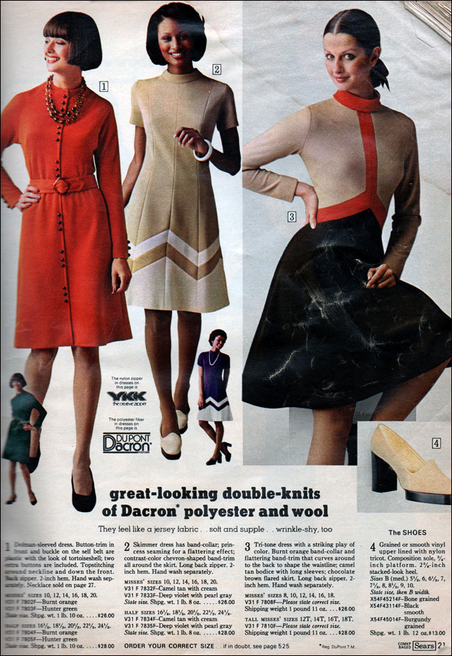 Veronica's back, wearing a supergraphic from a high-school hallway! They're wrinkle-shy, as the copy notes. This doesn't mean they won't wrinkle, any more than calling a girl shy doesn't mean she won't dance if asked.