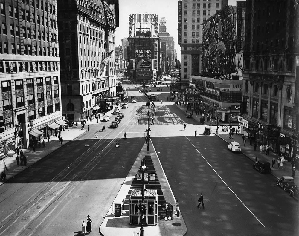 Wartime. The back of the photo indicates there was a Sunday street blockade for drills and civil defense tests.