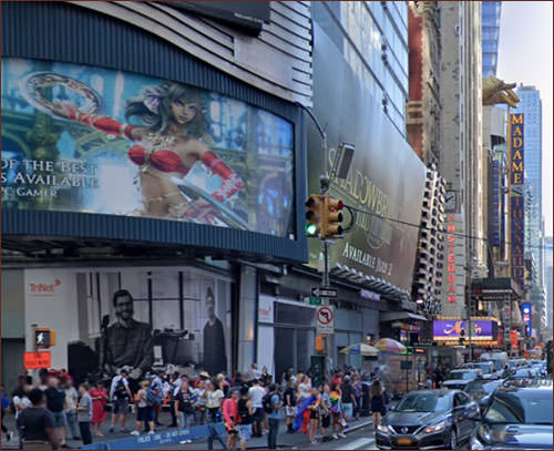 Above, Screengrab from a mid-50s movie: that's the southwest corner, I believe, with the New Amsterdam theater in the background.