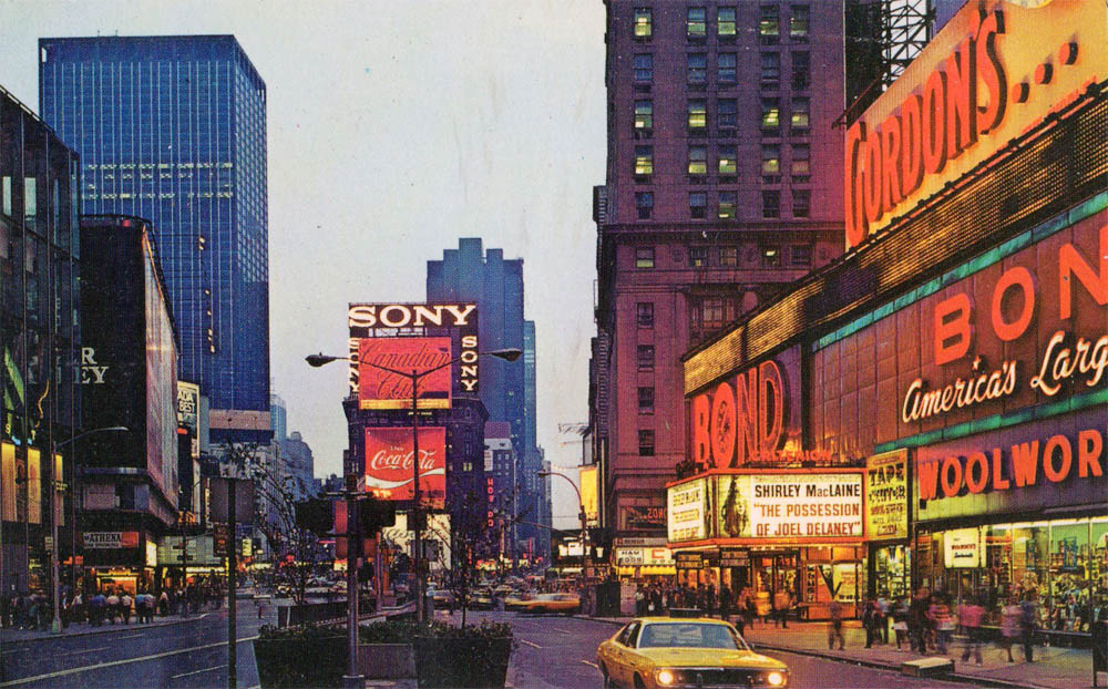 1972. Ahh, the rise of the post-Rosemary's Baby crappy occult movies. A blunt ugly tower. A glassy building on the left, replacing the Astor, which went down in '68 and was replaced by the W. T. Grant tower - now known as One Astor Plaza.