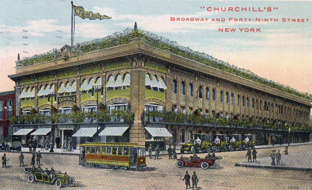 For the decade before Prohibition, Churchill's Restaurant and Cabaret was one of the largest and swankiest of the “lobster palaces” along the Great White Way.