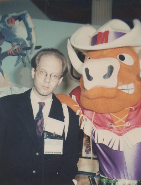 You got to meet all sorts of interesting people. Or should I say "meat"? Ha ha! These pictures were taken at the Toy Fair in New York, which I covered every year. For some reason I decided to look completely bored in every one of them, as if to show how the exitement of licensed characters was not as contagious as everyone insisted.