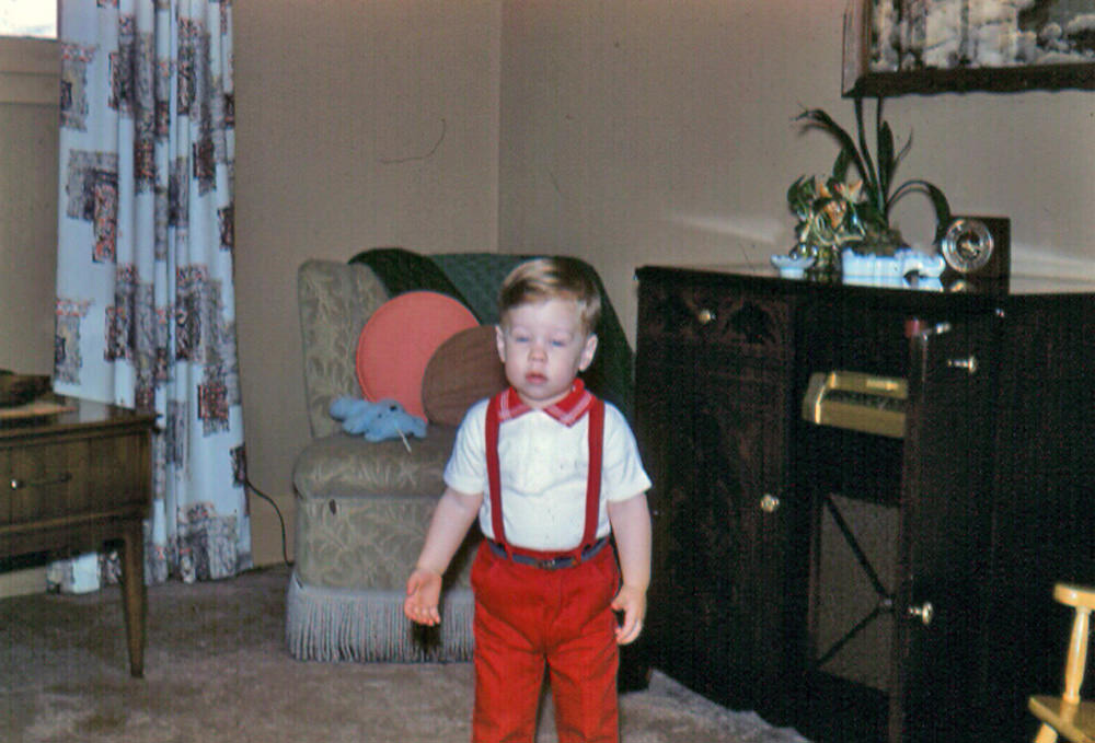 Without this picture I'd never remember the chair with the fringe. Horrid thing, but probably a hand-me-down from the farm. It was a rocker. No arms. Impossible to get comfortable in. The green item on the chair was one of the afghans my grandmother knit; it's still at my dad's house.