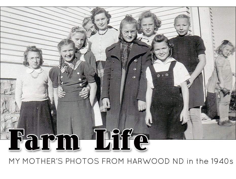 Then there’s Dick Mickelson. Dick and Donna. I heard the names growing up; they sent cards on my birth, and at Christmas. The names of her friends were like asteroids orbiting out beyond Pluto, part of our family cosmos, but impossibly remote. When I looked through the scrapbook I saw no one I knew except for my uncle, with a few shots of my Dad in sailor’s uniform, home on leave. In the first few shots, though, she was quite young - that’s her up there on the left at the schoolhouse, looking disconnected from the rest of the group. As far as I can tell the book goes from the early 40s through high school; everyone grows up.