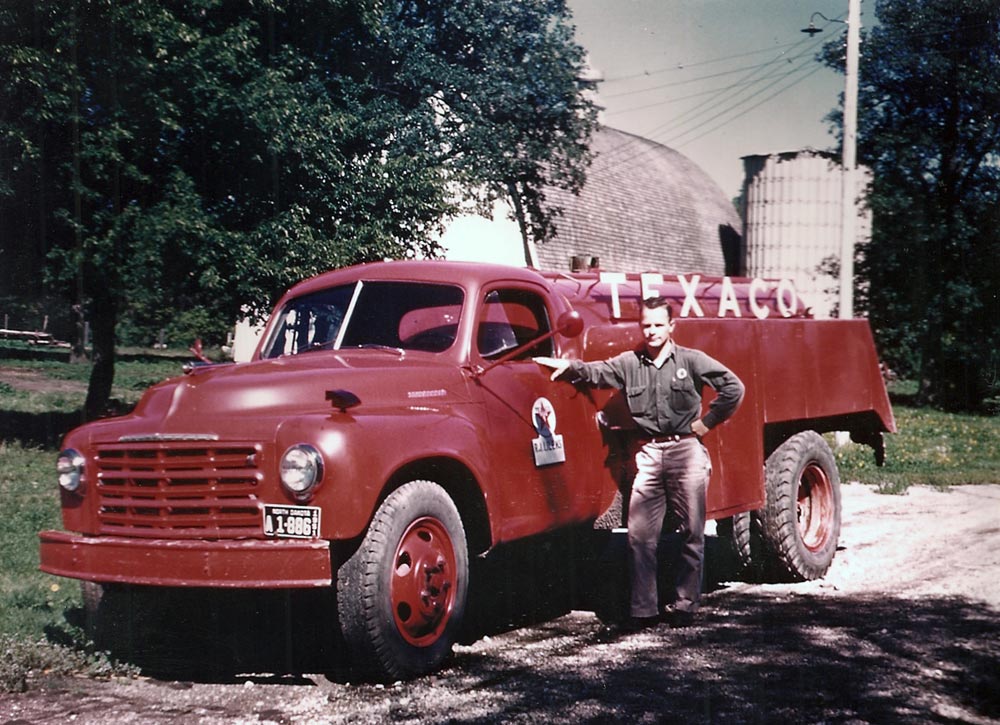 It started a few years before, after the war, with one truck: my dad's shown here at the farm with a great old tanker he drove around to fil people's homes.