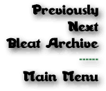 Blah, blah. Too beat to think; tired of the world at large. I just want to listen. I have so little time for music these days - its only in the car that I get to hear anything, and I cant rely on the radio. The 80s station plays exactly six songs, and every time I tune in I realize that Bon Jovi is still wanted Dead or Alive, and that the Talking Heads wish to be taken to the river. The Alternative station plays naught but mopey baritone sludge-rock; the FM Hot Rockin station seems to think that people need to hear Money by Pink Floyd once a day just so they can wait for the moment when bullshit isnt bleeped and they can exult in living in these progressive times. Dude! They let that go! They are so high! (One of the more amusing beliefs of the stoner is the conviction that everyone whose work they enjoyed was completely stoned at the time, from Monty Python to Victor Hugo.) So I burn my own CDs. Today while playing some mid-90s trance number from Underground, Gnat started singing the Itsy-Bitsy Spider as loudly as possible. I took the hint and switched it off. And sang along. Second verse, same as the first.