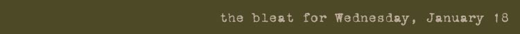 Long day – filed four columns, and now I’m going to attack the email. See you tomorrow. I know, I know: all very lame. If nothing else, my contribution to the language will be the phrase “as lame as a Wednesday Bleat.” Ah, sure, he meant well, but t’was as lame as a Wen’sday Bleat, t’was.