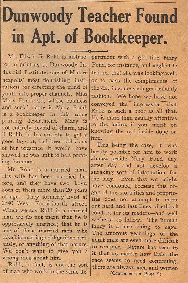 Do you really have to read page two to know where that's going? The police duly booked the couple on a morals charge, no doubt brought by the wife or nosy neighbors. That's the real story. Who tipped off the paper?