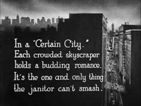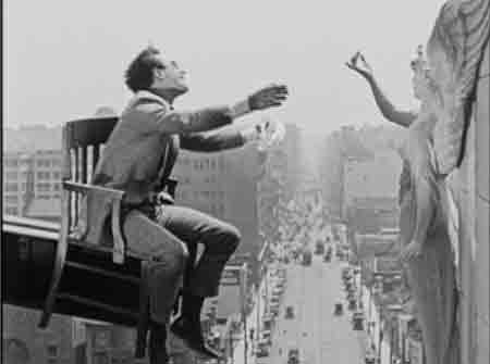 Eventually he’s been borne out of his office on a steel beam from a construction site that swings into his office and picks up his chair. (It’s happened to everyone at one time or another.) Borne upwards, he senses his ascension, hears harp music from a music studio, thinks he's succeeded at suicide, and removes his blindfold to greet the angel of paradise – a statue on the building’s cornice. The gag is set up with craft and ingenuity, but the image stands apart from the movie as something peculiar to its era, and the country and culture that gave it birth: