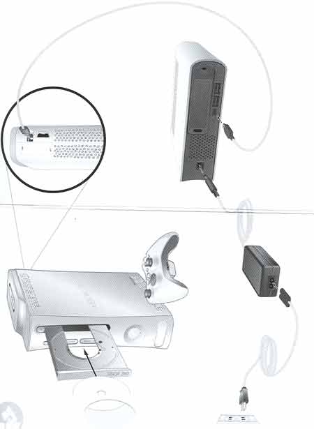 . . . which manages to be wrong and right for everyone, as well as right and wrong. Now: if you have your Xbox parallel to the ground, as I suspect most do, the illustration showing where you plug in the USB cord is upside down – but of course the position of the controller tells you it’s upside down. Then again, the position of the install-disc sleeve (the faint outline by the disc drawer) orients your eye to the parallel position. It didn’t take me long to figure it out, but I discovered I had to remove the Xbox wireless dongle to hook up the HD. Great. I assume it’ll to in the back of the HD drive, but there’s nothing to suggest that’s the case.
