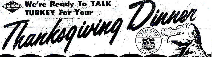 The happy turkey with the Jerry Lee Lewis hair is from 1956, as is all the Thanksgiving art this week. They cover the basics: the happy-go-slaughter bird, the irritating “talk turkey” cliché everyone uses without knowing what it means. It’s just something you say on Thanksgiving. It also suggests that the rest of the year the butcher will be evasive and less than frank; only on Thanksgiving will he be honest and forthright in his conversation.