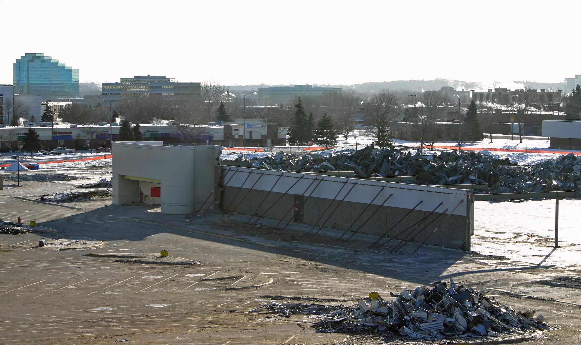 They’ve knocked down the entire store except for the façade, which must be made of sterner stuff. The grappling machines have been chewing away at the building for a week, and the result is a huge empty lot with a few mean piles of debris and twisted beams. You want cold? This is cold.