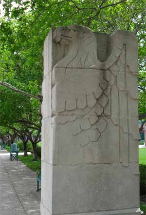 These are the eagles salvaged from the 1927 convention center. A plaque recites the civic bromides engraved on corners of the Auditorium's interior: