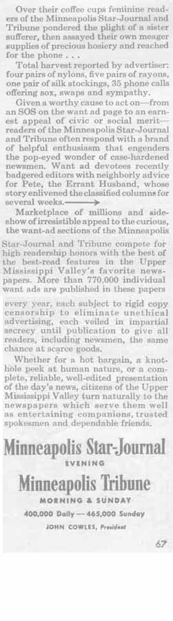I’ll be developing new content, both video and audio, as well as blogging throughout the day in a new, improved, evolving Bleat! History buffs will relish the new “Then and Now” feature; podcast fans who want something new to hear on the way into work may enjoy my new “Constant Comment” feature, in which I read the stories and offer small editorial asides (think the MST3K approach, applied to a newspaper, spoken aloud.) Since the production costs on the podcast are nil, we’ve lined up some unusual sponsors who otherwise might not be able to afford print ads. (Comic book stores, online merchants, start-up sites, and other niche clients.) The video stuff I can’t quite describe yet, but I know the objective: get the clips into YouTube and beyond, with the StarTribune logo embedded in the corner for all to see.