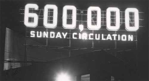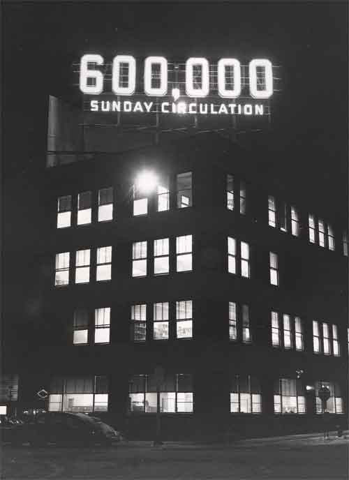 Draw no conclusions from that graphic. The Final Annoucement of my bucket status, as well many, many other decisions affecting the lives of many fellow employees, will be announced Monday. Since this is Sunday night, and I can’t see into the future (obviously, or that merry moment when I was relieved of the burden of my column would not have come like a 2 X 4 in the brainpan) I can’t say what the news will be. So! How was your weekend? Mine was grand. Aside from one furtive episode Saturday afternoon, I stepped away from the computer entirely. No email, no web, le shebang totale. I went to Target to stock up on Things, because we were low on Things. (By “low” I mean I was down to quadruple redundancy on several items, like commemorative metal Jetsons dishwasher pellets containers.) I tried on some cargo shorts as well, since the ones I bought a few years ago are frayed and threadbare. Then I noticed that the new ones came pre-frayed for your convenience. I had a horrible imagine of someone in an Vietnamese factory, picking at the seams with a needle as fast as she could. She’s paid by the piece. The more pants she ruins, the more she earns. She wonders what it would be like to live in a country where you have so much money you pay people to rip apart your clothes for fashion’s sake. Then she laughs: suckers!  Mostly I got tree-flesh products. Tree-flesh turned into thin rolls of “bathroom” tissue, tree-flesh folded into quilted napkins and imprinted with seasonal motifs, tree-flesh impregnated with lotion, interfolded and stacked into gaily-printed boxes, tree-flesh rolled in tall cylinders, tree-flesh that had been die-cut and stamped with words. At the register I gave the clerk some rectangular tree-flesh with pictures of expired politicians and was handed an account of my purchases, printed on tree-flesh. Then I drove to Home Depot for Cedar Nuggets, as they’re called. Tree-flesh. Big aromatic bags of cedar chips, which I heap here and there around Jasperwood. There’s the backyard landscaping, the south side, the upper walk and the front landscaping. It takes 80 bags to fill everything. I do half one year, half the next, because it’s a miserable, miserable job. The Element holds 20 bags; I can pick up two at a time. And this is one of those instances in which I regret living on a hill: hauling those bags up the stairs guarantees the ol’ stabby-knives in the lumbar region the next day. But my complaints are but a tenth of the next-day agony my wife will greet on Monday; she spent the entire weekend weeding, bent over, gripping and pulling and dropping and standing and bending and gripping and pulling and so on. I understand completely why people move to Arizona in their 60s, and look out at a yard of gravel and hardy plants bristling with nature’s own hypodermic needles: even if you got the gardening urge, the plants themselves say back off, pal.   On the other hand, Jasperwood looks incredible: a week of rain and a weekend of planting and pruning, and everything’s popped out in full glory. This is why we live here. This, and the punitive taxes. And the flowers!  Random cultural note: over the weeken Back to Strib Suspense Theater. Tomorrow I return to the office and transfer the money from your tipjar contributions to a CD, which will sit earning interest, and be used as an emergency bandwidth fund if the worst should ever happen. I thank everyone who contributed, and I’ll try to get to individual thanks this week – be assured that the money will be applied to the future of the site. If I go and get myself hit by a bus tomorrow, the site will stay up long enough for you to download every page which you can enjoy in perpetuity.  Anyway: I had to scan this picture, which I found in the Strib archives.