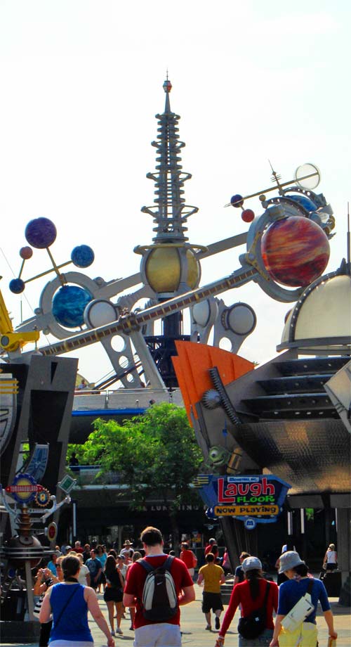 But all that came later in the day. First we hit my favorite place, Tomorrowland. Not because it has the best rides, but just because it isn’t aping any particular time except the post-war dreams of the future. It’s an optimistic place with lots of perforated sheet-metal, more or less.