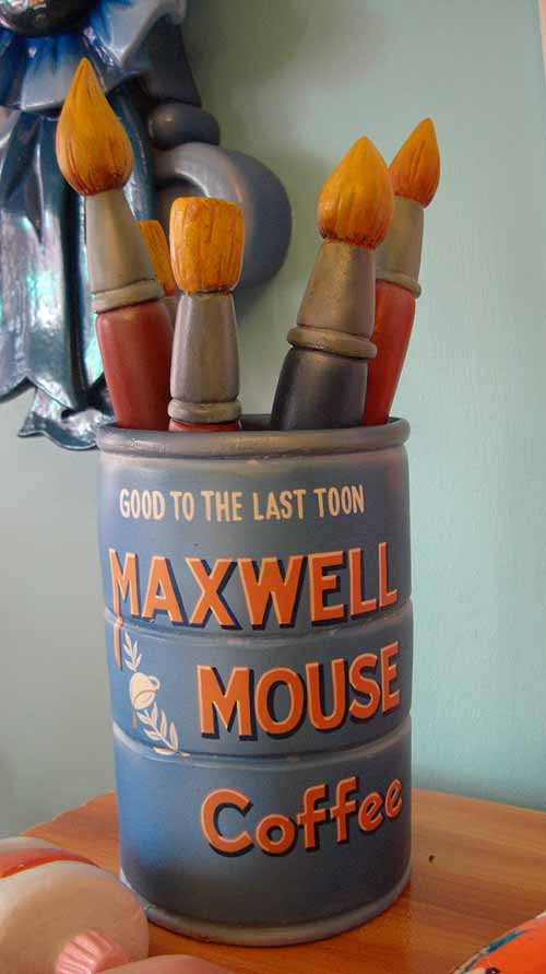 By two it was 90 and we were beat, so we hit Minnie’s house in Toontown before heading back to the hotel. I love the details in her house. It’s all very 40s, right down to the style of the electrical plug-ins. Things that don't have to be accurate are, nevertheless. Here's the coffee can in which she kept her brushes: