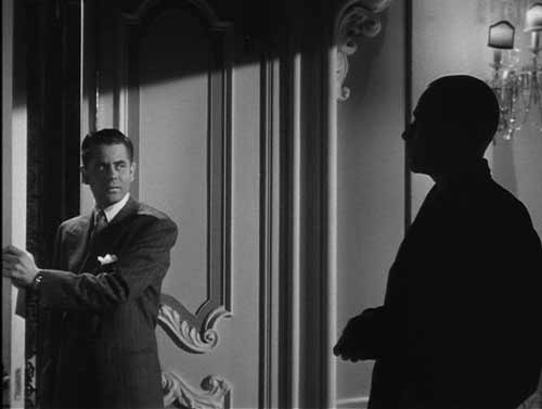 Anyway, here’s the first time we see Gilda. The villain, Ballin Mundson (what a weevily name!) introduces his, er, employee to the woman he’s just brought home. Glenn Ford’s reaction isn’t exactly subtle: it’s as if every fluid in his body was just replaced with testosterone and hate.
