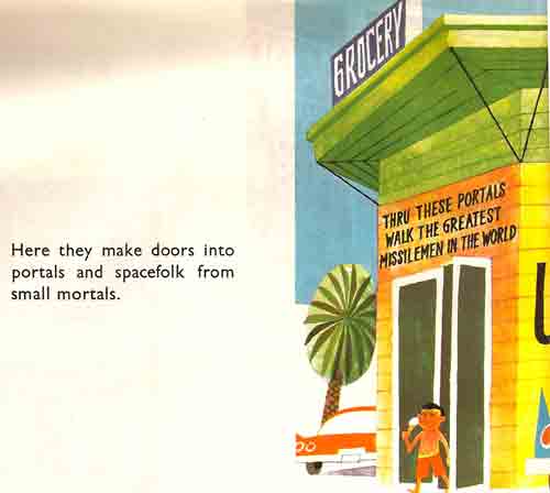 This style may or may not appeal to you. I understand why it was popular; people were accustomed to scrupulously realistic illustrations in books and magazines, so this flat loose style looked modern and fresh. If done well, I think it was cool enough, but I don’t have the jones for the style some do. It infected cartoons as well – I know the lads over at Cartoon Brew are big fans of the UPA style, and I’ve greatly enjoyed Amid’s “Cartoon Modern” book. But sometimes it makes my head hurt. This is an example of a book that makes my head hurt, because everything is about 17% away from being really cool. For example: