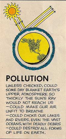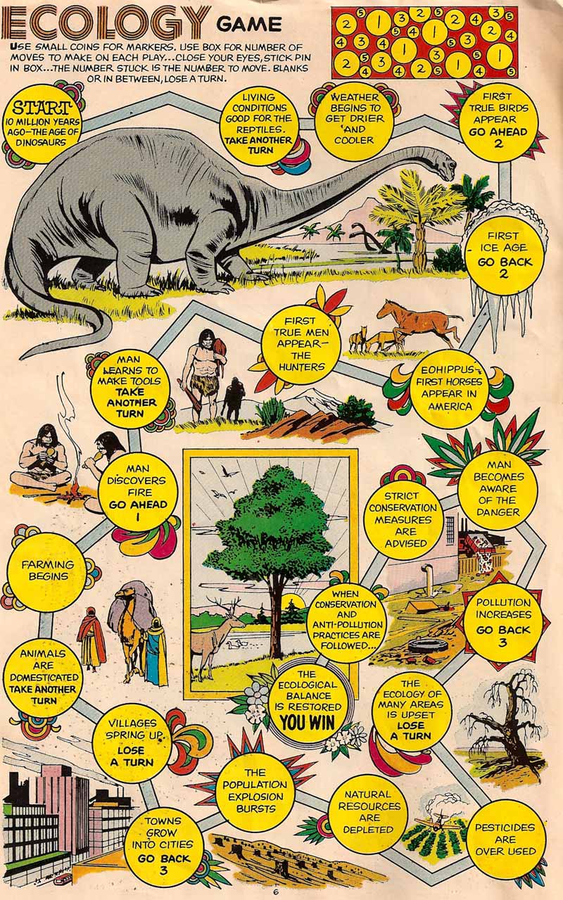 There's also a game you can play at home; it details the rise of mankind, and its eventual progress towards environmental wisdom. A larger version is here. This detail is instructive: