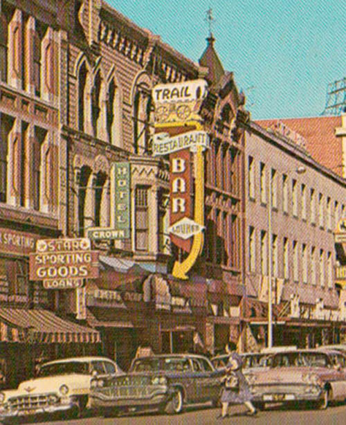 Today we have five Main Streets; here’s a detail from a postcard I didn’t use, because I have another with a better view. Old Cheyenne, Wyoming.