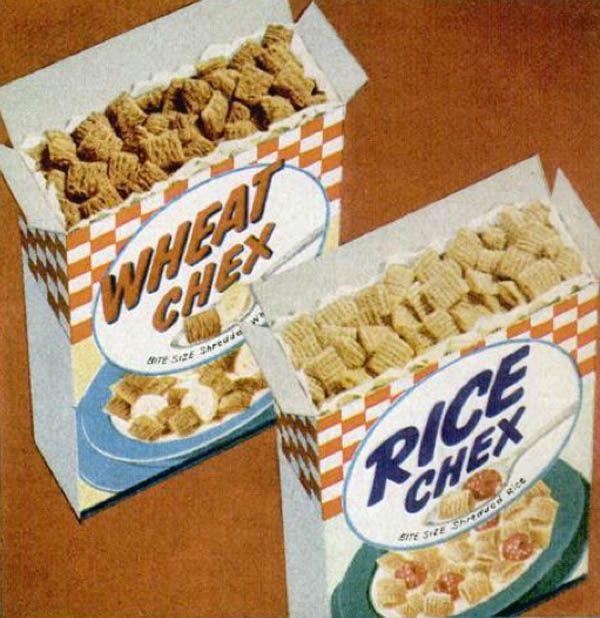 Chex was a product of Ralston-Purina, brought out in 1937. Ralston made dog food and horse food and cow food and so on, but decided to branch into human kibble in 1902 when the owner of Purina entered into business with Webster Edgerly - a one-of-a-kind American quack who proclaimed the doctrine of RALSTONISM.