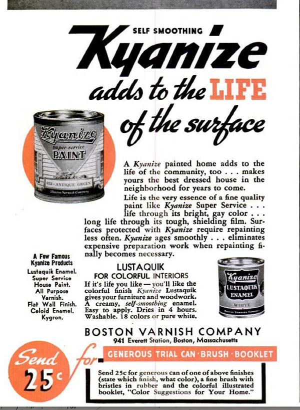 As it happens, J. H. Kyan. He invented a process that products wood from decay by speaking it with mercuric chloride. The term must have been widely known to men who painted their houses. Which men did. Every other year, from the sound of it.