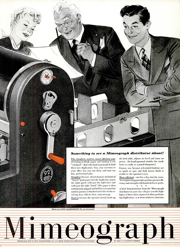 At this point the technology was over half a century old, and “Mimeograph” was used in an 1887 patent filing.