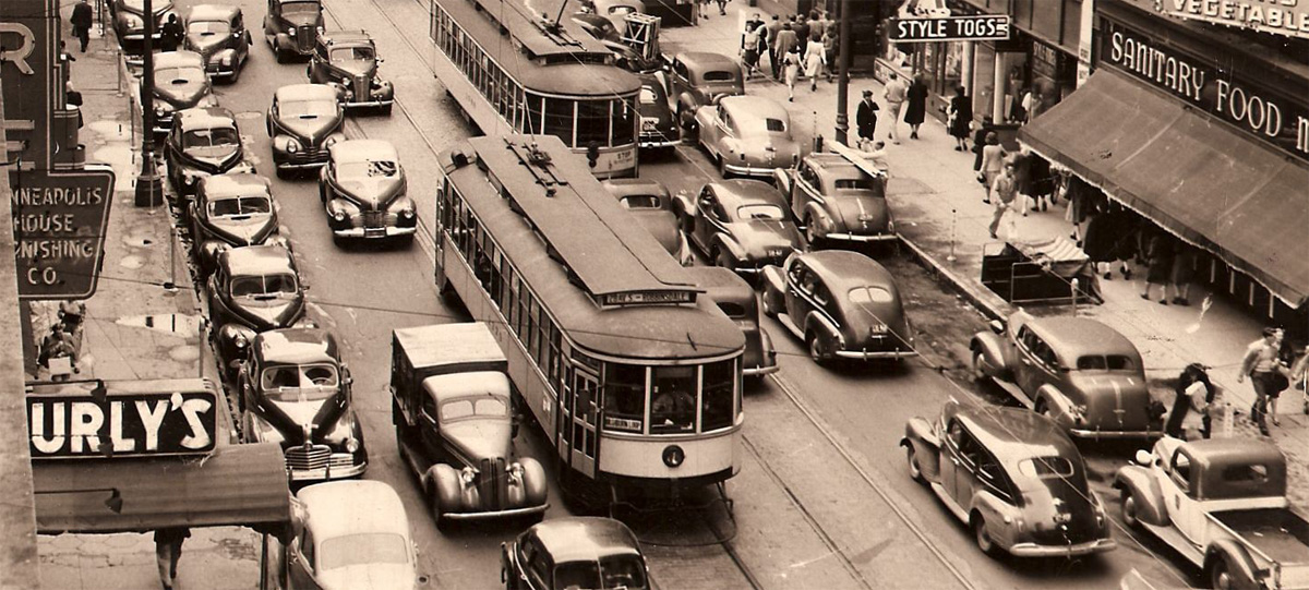 So what's this Bleat-art all about? Two potent pictures full of the life of the times, from the Minneapolis House Furnishings ("Widows and Orphas Protected!") on the left, by Curly's show bar, to the streetcars and the snarled traffic, to the door in the sidewalk on the right.