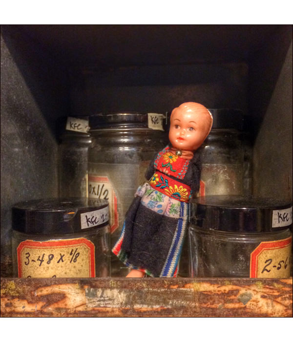In the tiny room of many old bottles was a dull-eyed doll, stripped of her clothing.