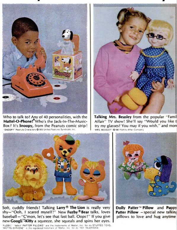 The key word here for child-satisfaction purposes was "Mattel," since it was asumed by all children that they made the best toys. The year: 1967.
