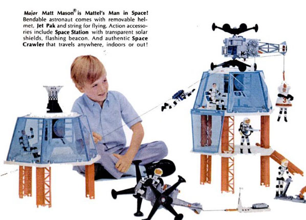 I loved these things, and I still have one Matt. The wires inside his body snapped at some point, meaning his arms hang useless and his legs are insensate. But if you're going to suffer massive nerve damage, the low gravity of the moon is a good place to be. No need to walk. Hop and float.