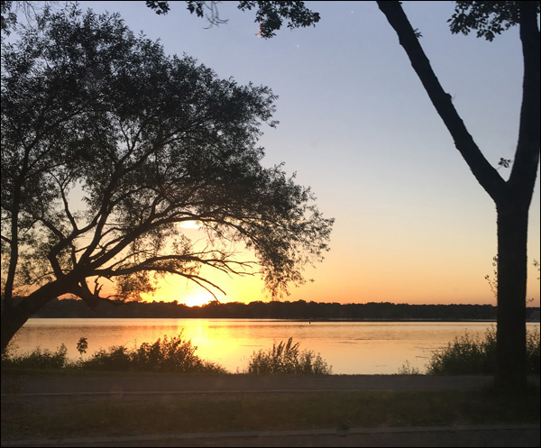 At dusk I went to get Daughter from the bandshell, and this was the view from my open window.