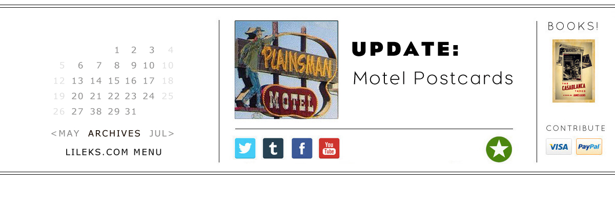 Oh - have some motels! I love this site so much. If I had to boil lileks.com down, it would be motels, matches, the Gobbler and recipe books.